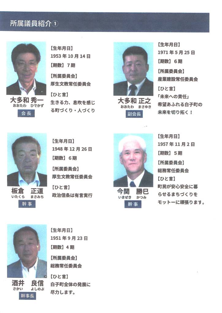 会派 ” みらい ” は結成当時 10 名でスタートしたが、その後(令和 4 年 3 月)、1 名が会派を離脱している。現在、同会派は 9 名の議員で構成されている。今回の問責決議に賛成した白子町議員は、会派 ” みらい ” 所属議員 9 名 に 日本共産党所属議員(1 名)を加えた 総勢 10 名である。