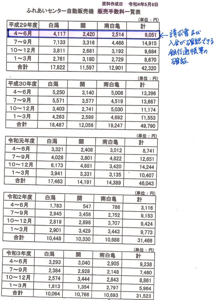 コカ・コーライーストジャパン㈱ 設置自販機の販売手数料及び電気使用料に関する証拠資料(請求書及び入金が確認できる銀行通帳等の確証)の開示請求を本日(令和 4年 5月 25日)実施しました。回答を待って続報致します。