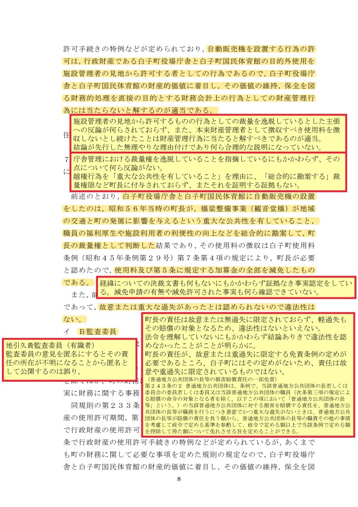 一部事実認定に誤認はあるものの、町監査委員として職責は果たされたのだと思う。