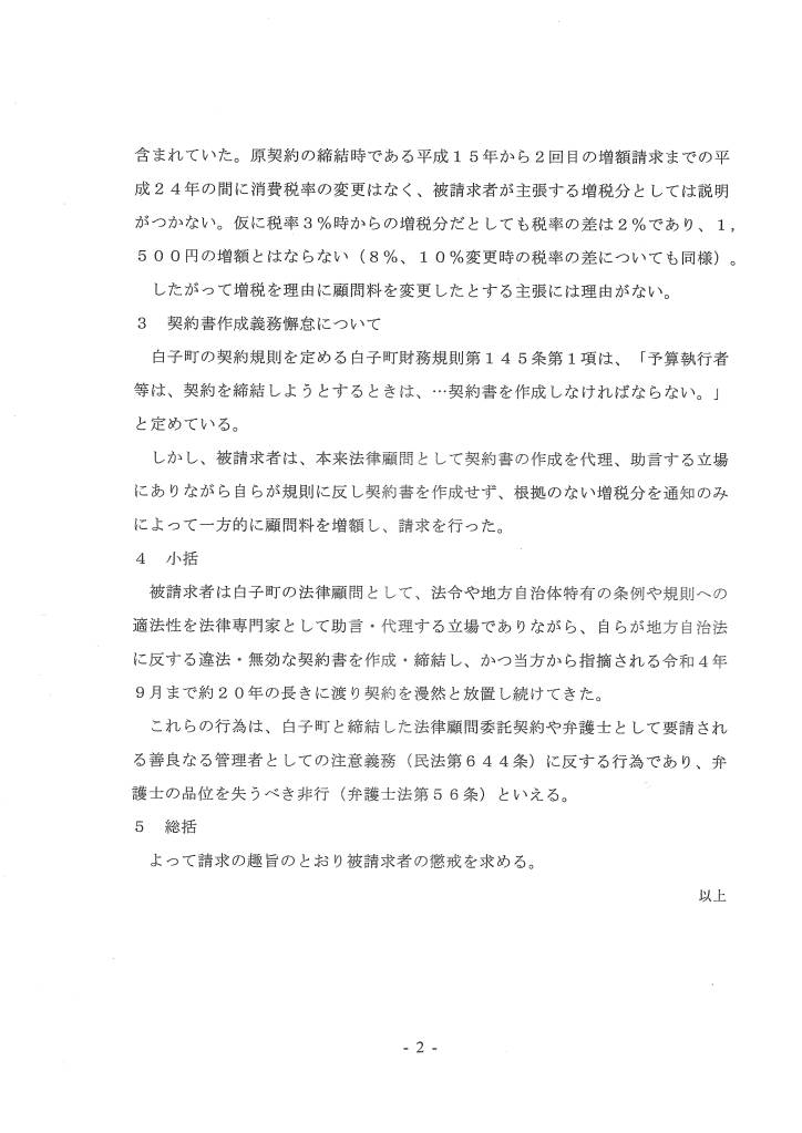 ❷懲戒請求者 市民オンブズマンの会 会長作成『反論書』(2ページ)(作成:令和 4年11月18日)