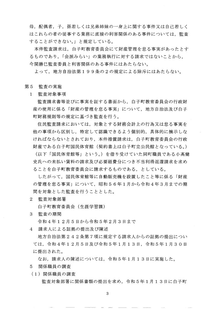 【 監査結果(通知)】< 白監第39号令和 5年 2月 3日 >白子町監査委員 地引 久貴、今関 勝巳