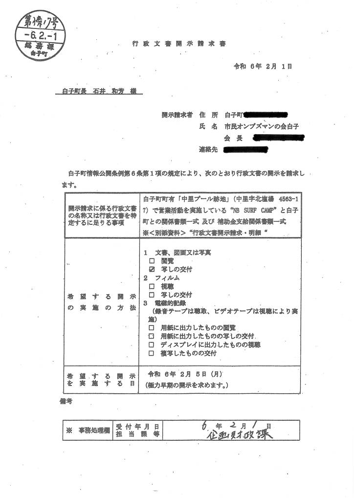 下記は、令和 06年( 2024年)02 月 01日の開示請求です。