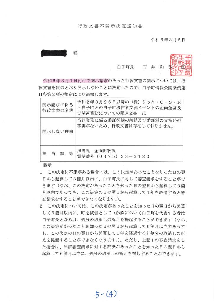 白子町民 各位 令和 06年( 2024年)03月06日(水)