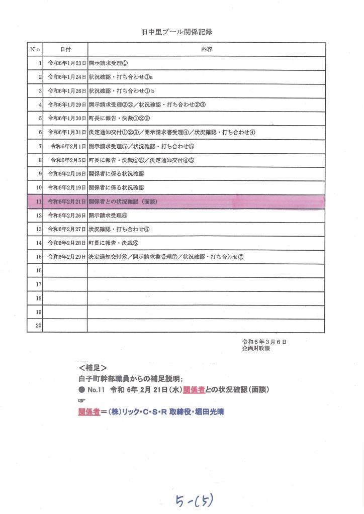 要旨:当会(市民オンブズマンの会白子)より指摘を受けて以降の、旧・中里プール跡地関係の記録の提示を受けました。