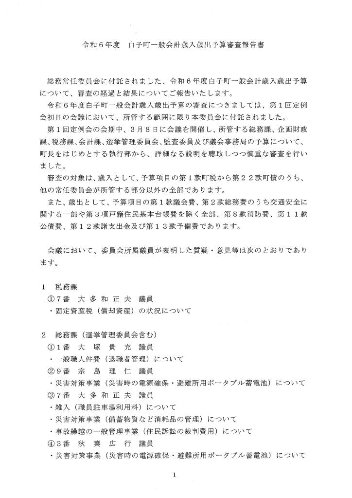 次号では、「令和 06年度 第 01回 白子町議会(第02号)」(2024年03月13日開催)のインターネット中継による会議録を情報公開する。