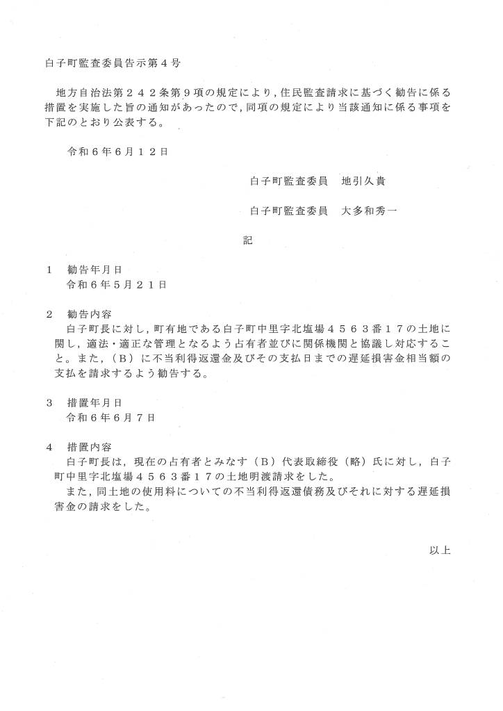 ❶白子町監査委員告示第4号(令和 6年6月12日)