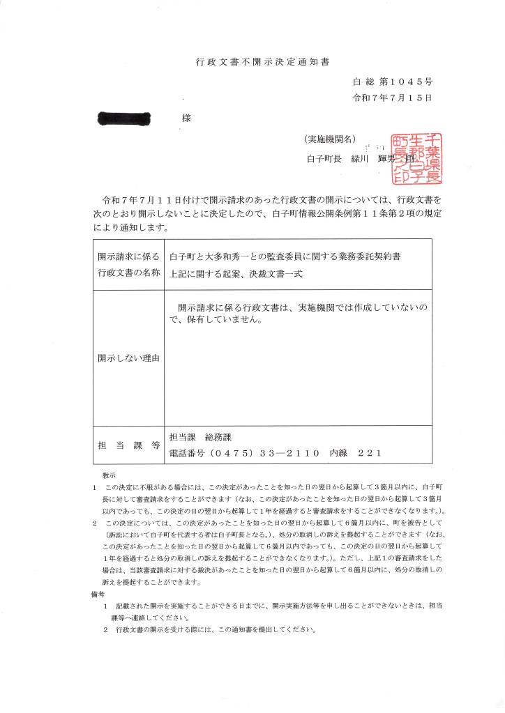 【経緯】☞<223>【監査委員・大多和秀一氏(白子町議会・議員)に関する行政文書開示請求書】※2025年07月11日(金)を参照されたい。
