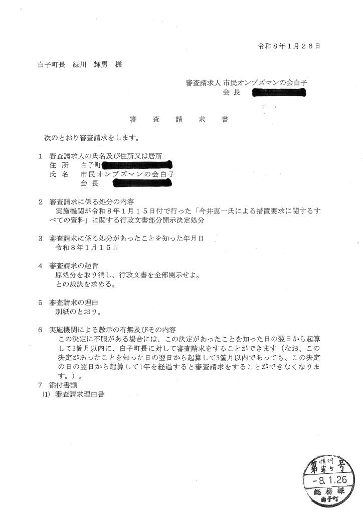 実施機関が令和 8年 1月 15日付けで行った「今井恵一氏による措置請求に関するすべての資料」に関する行政文書部分開示決定処分